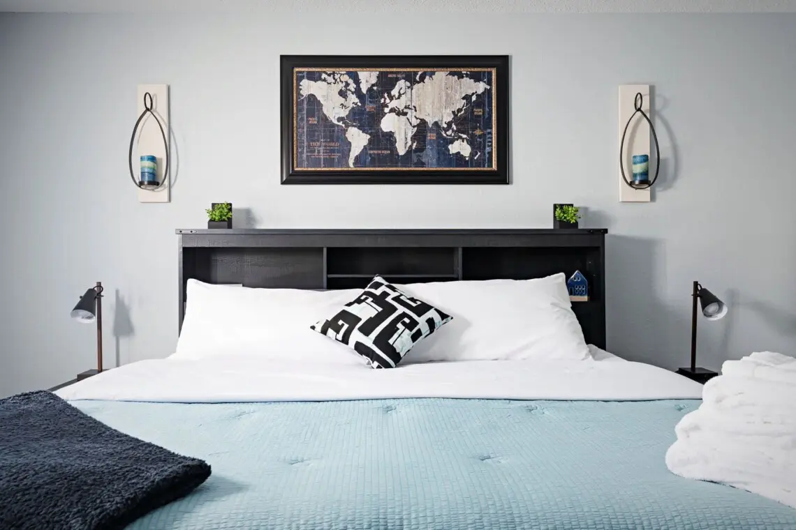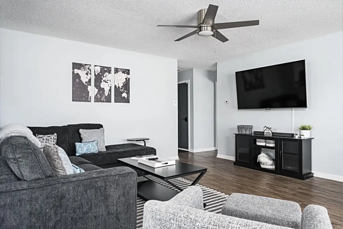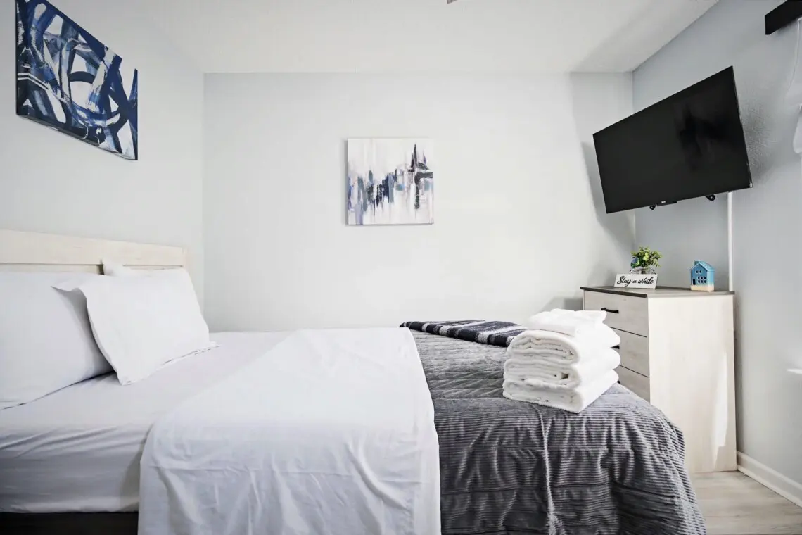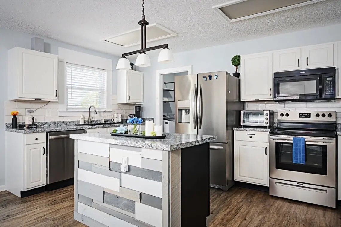 This charming single-floor home accommodates up to 8 guests. The spacious primary bedroom features a luxurious king-size bed, ensuring a restful night’s sleep. The second bedroom boasts a comfortable queen-size bed, while the third bedroom offers a full/twin/trundle combo, perfect for children or additional guests. For extra sleeping space, the couch pulls out into a full-sized bed, providing plenty of flexibility for your group.