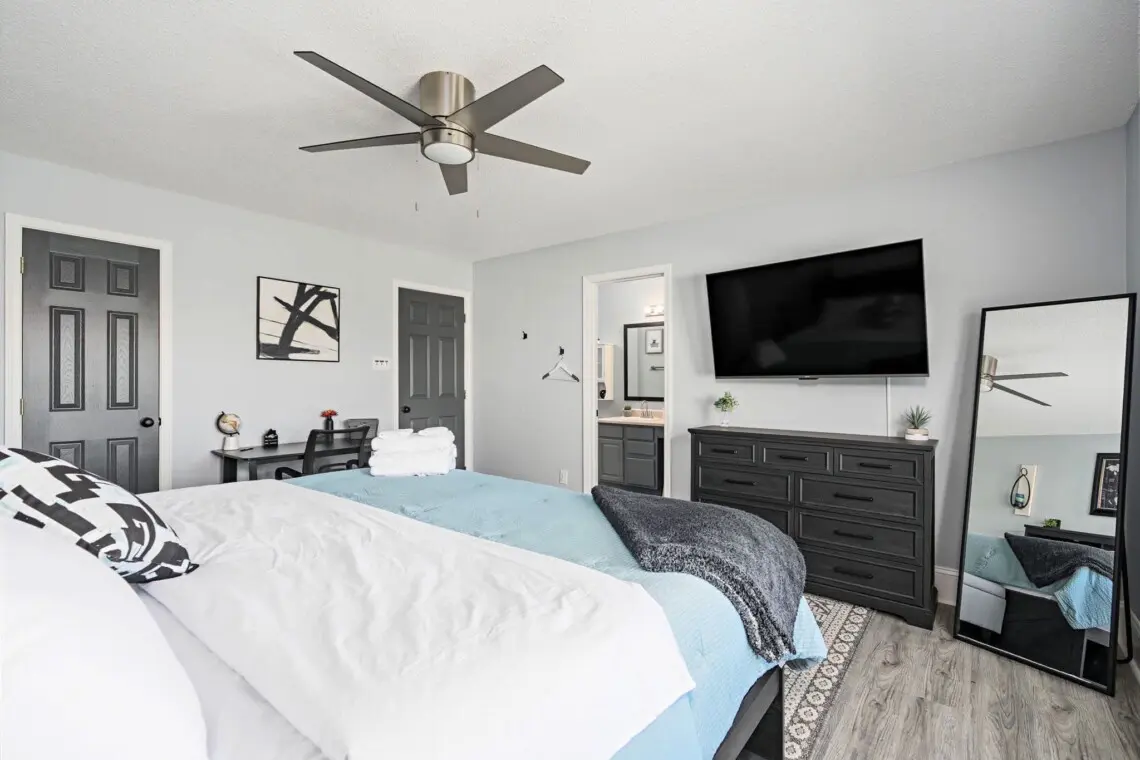 Step outside, where you can unwind with a BBQ grill & patio furniture – a great spot for enjoying the outdoors. The house also features a private entrance, offering added privacy and ease of access. With free parking for up to 5 vehicles, you’ll have no trouble getting around and exploring all that Indianapolis has to offer.