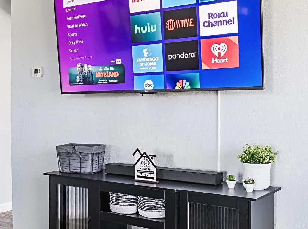 There are 4 tvs in the house. One in the living room and one in each bedroom. They are Roku TVs enabling streaming of any capacity!