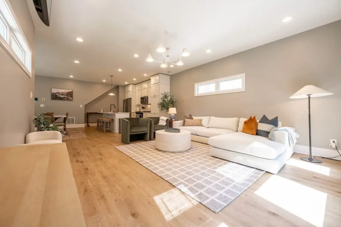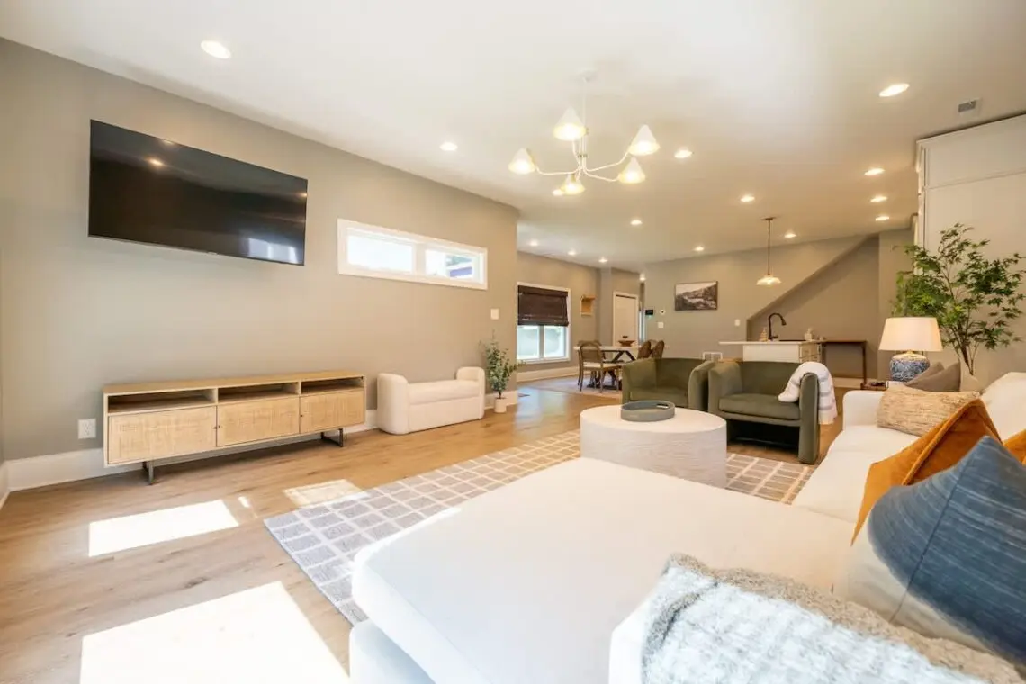 The home boasts a modern and stylish interior with an abundance of natural light that creates a warm and inviting ambiance. As you explore the space, you’ll appreciate the attention to detail and the thoughtfully curated furnishings. The fully equipped kitchen showcases sleek stainless steel appliances, perfect for preparing delicious meals or whipping up a quick snack. The open floor plan seamlessly connects the kitchen and living room, creating a social and inclusive environment for all guests to enjoy.