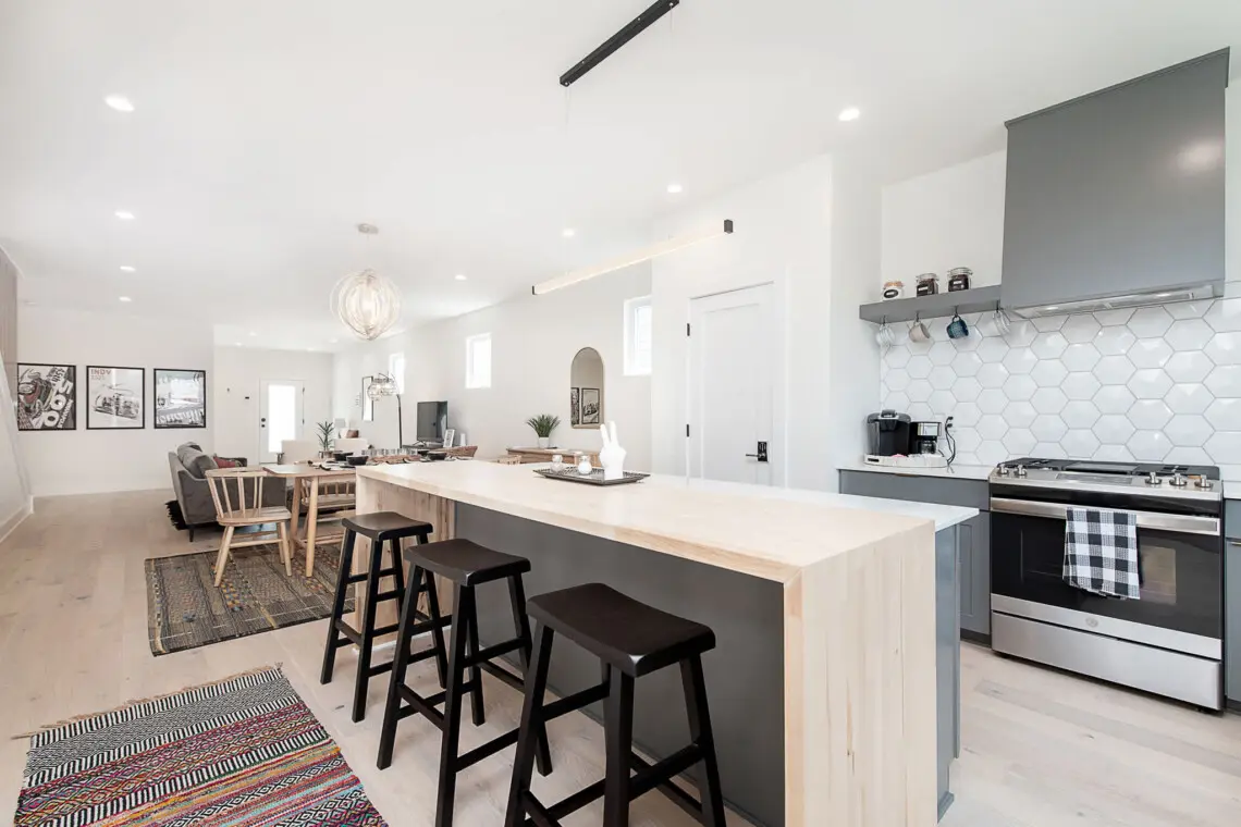 Step inside a beautifully designed home where comfort meets contemporary style. The open-concept main floor features a cozy living area, a spacious dining table, and a fully equipped kitchen with bright countertops, stainless steel appliances, and a large island perfect for gathering.