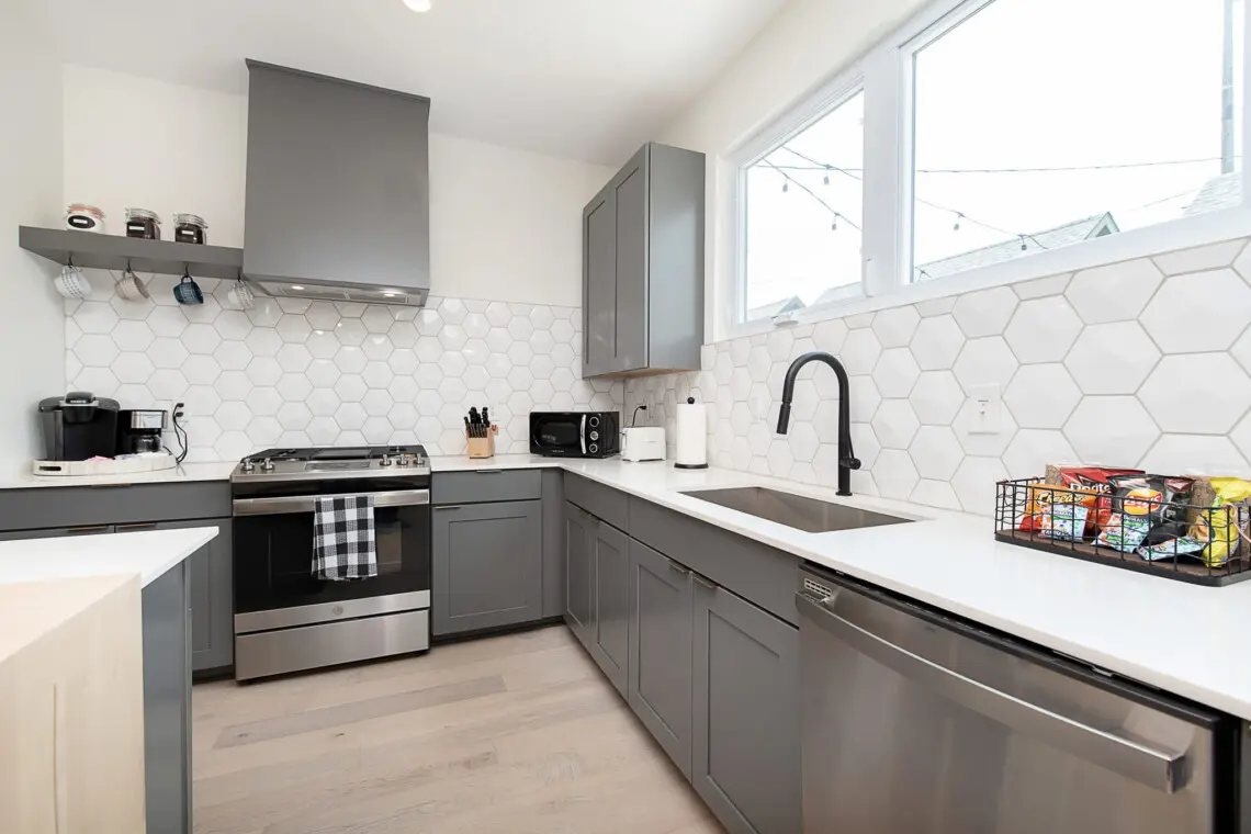 Outside, relax in the fenced backyard with a private hot tub and patio seating, the perfect setting after a day exploring the city. Inside, enjoy high-speed Wi-Fi, board games, and abundant natural light throughout.