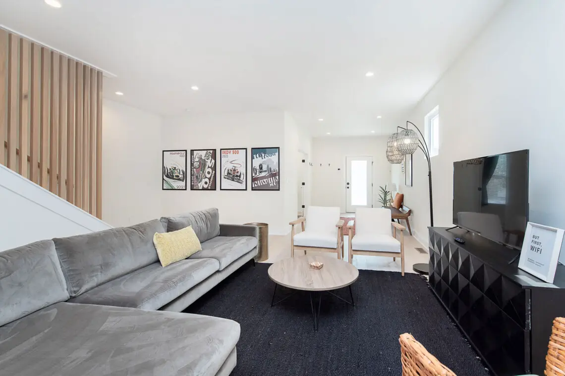 Experience the best of Indianapolis in this modern 4-bedroom retreat designed for families, groups, and business travelers. Unwind in the private backyard hot tub, cook in the fully equipped chef’s kitchen, and enjoy the comfort of a first-floor bedroom just minutes from downtown.