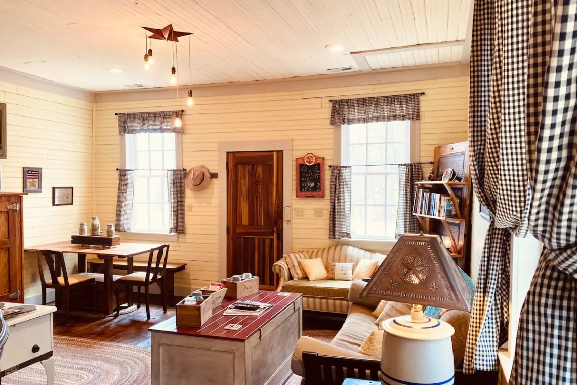 Step back in time at this beautifully restored 1800s schoolhouse, now a cozy mountain escape along a peaceful trout stream. Blending handcrafted furnishings and curated antiques with modern comforts, this home offers a truly unique stay. Ideal for couples, small families, or friends seeking a tranquil retreat, guests can enjoy mornings with coffee on the screened porch or evenings by the fireplace. Just minutes from Lake Junaluska, Cataloochee Ski Mountain, and charming Waynesville, it is the perfect mix of history, relaxation, and mountain adventure.