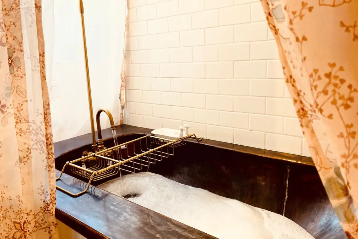 Please note: The copper bathtub and shower are compact, requiring a small step in and out. The indoor fireplace is seasonal and unavailable during summer months.