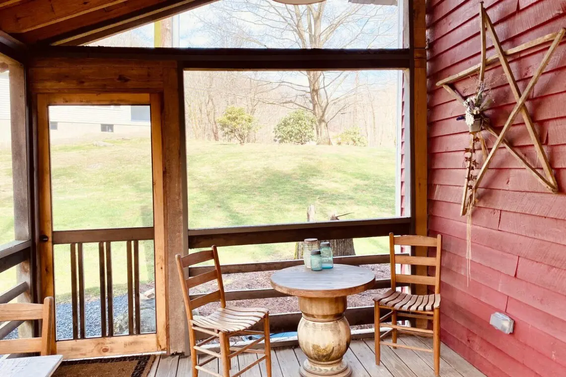 Guests have the entire Schoolhouse to themselves, including the screened porch, grassy yard, and trout stream that runs through the property (NC fishing license required). Parking is available on-site. Check-in is simple and contactless, and the home is equipped with keyless entry.