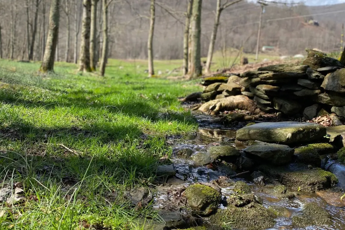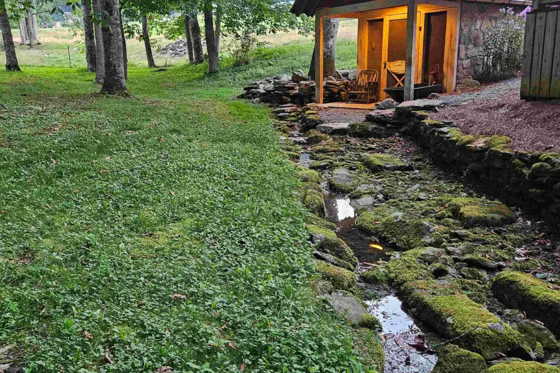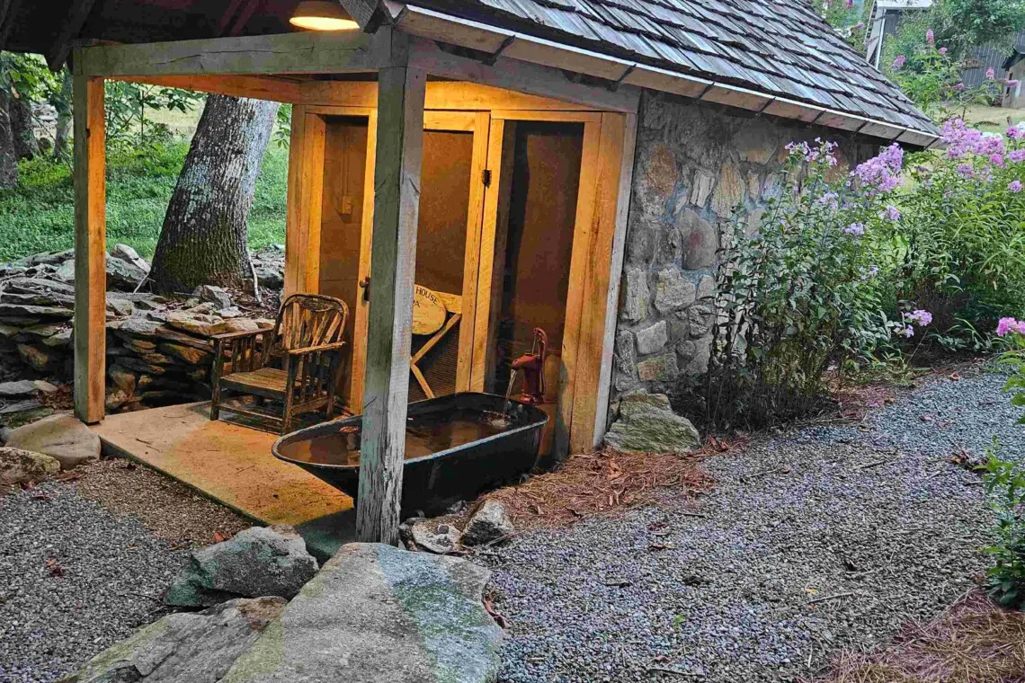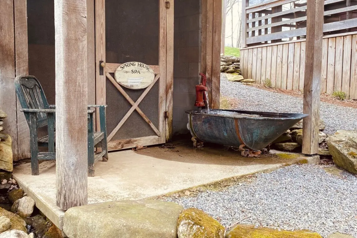 The highlight is the handmade copper bathtub, perfect for a long soak after a day of exploring. The screened-in porch invites you to unwind with the soothing sounds of the stream, or step outside to enjoy the large grassy yard, perfect for lounging, picnicking, or fishing (with an NC license).
