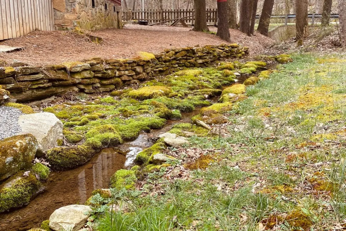 Tucked among the trees with views of a peaceful stream, the Schoolhouse offers a quiet, storybook setting. The surrounding area is a blend of mountain charm and small-town hospitality, with neighboring cows grazing in nearby fields and scenic backroads that lead you to skiing, hiking, or horseback riding at Cataloochee Ranch within 25 minutes.
