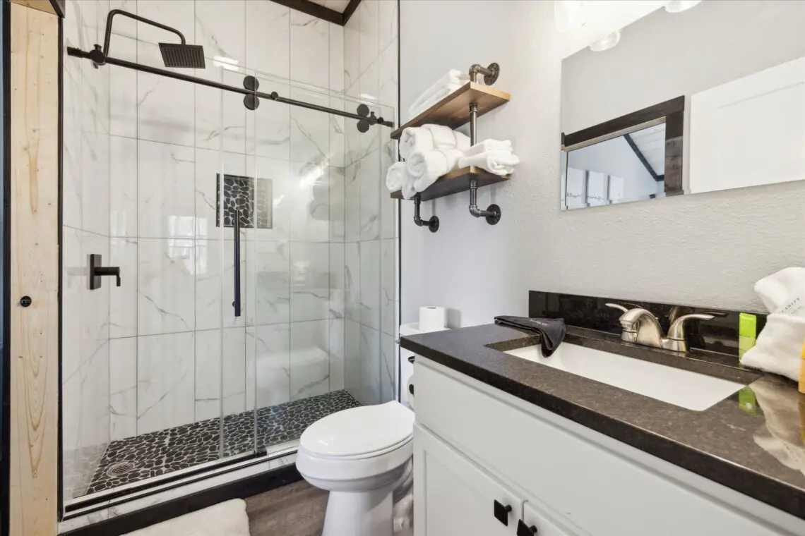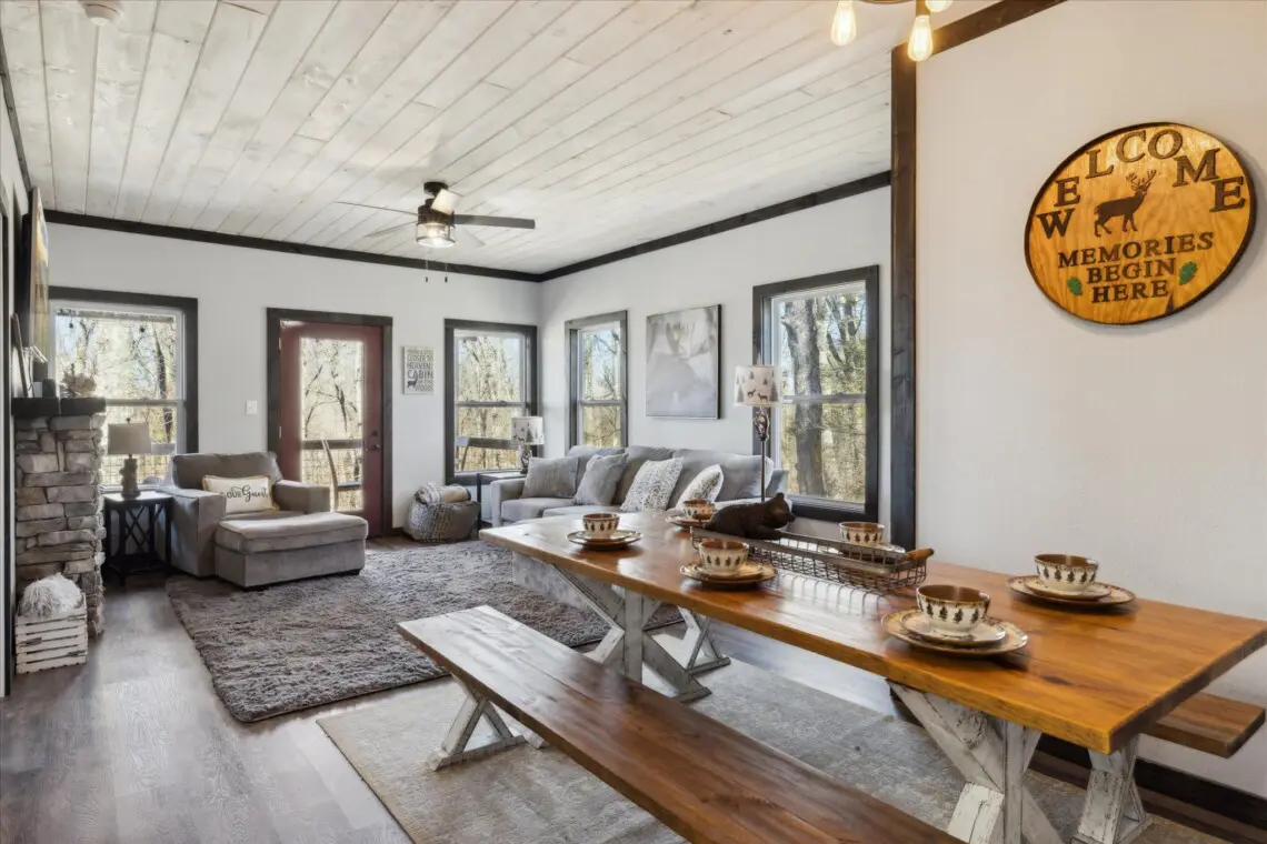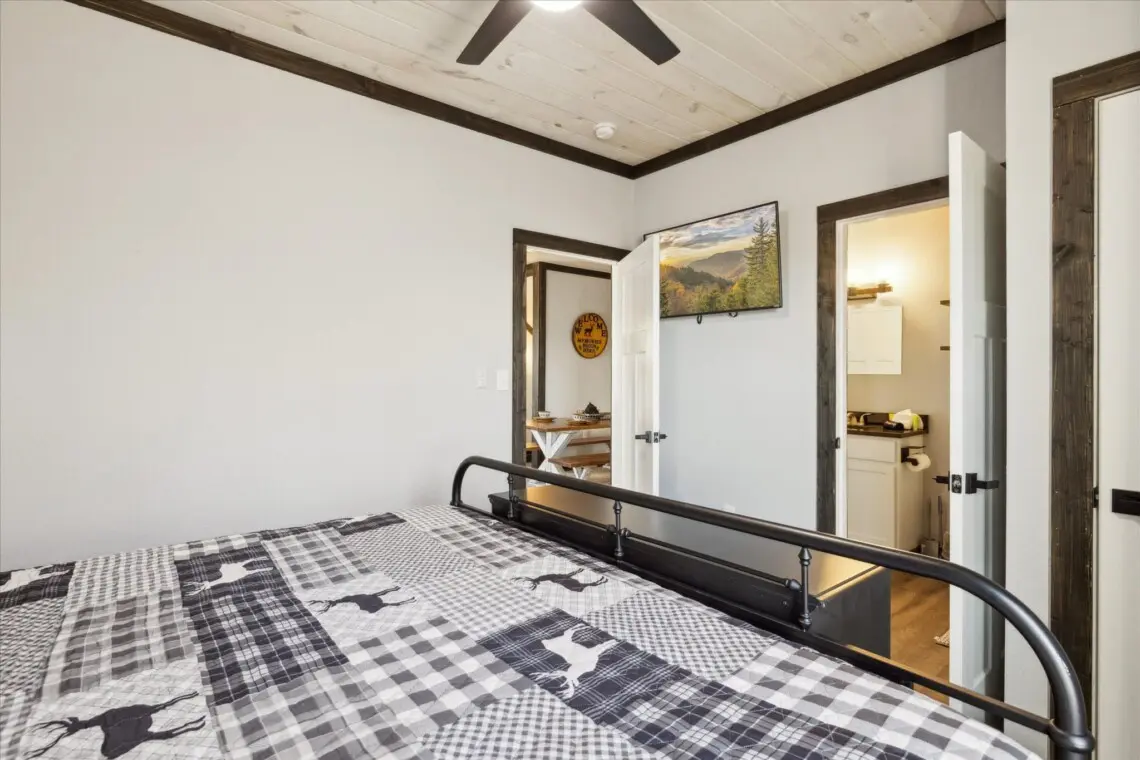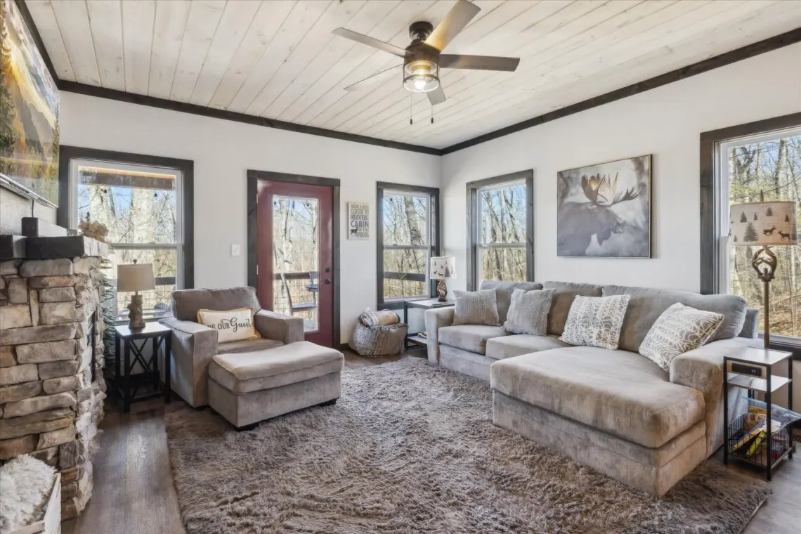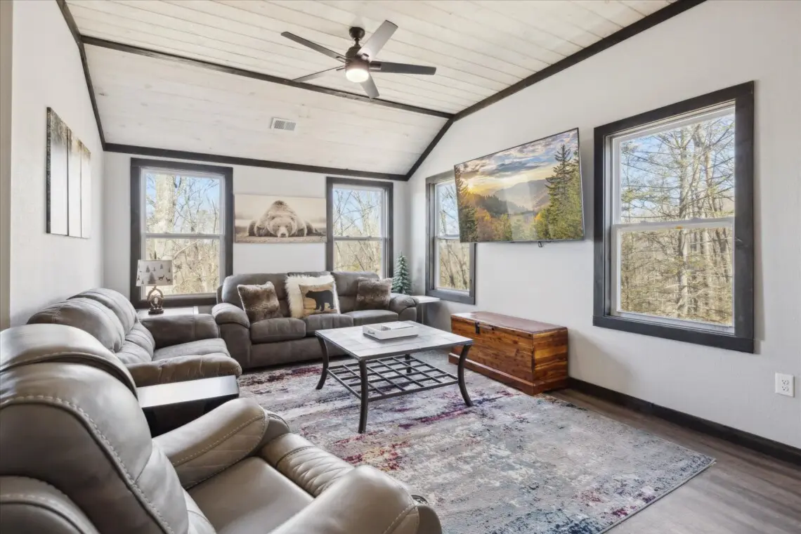 Step outside and enjoy evenings by the cozy outdoor fireplace, soak in the hot tub under the stars, or sway the afternoon away in a relaxing hammock with the mountains as your backdrop. For those who love a little friendly competition, the game room with pool and arcade games guarantees hours of laughter and fun. Inside, you’ll find expansive living areas, a fully stocked kitchen, and comfortable, private bedrooms designed for restful nights after full days of exploring.