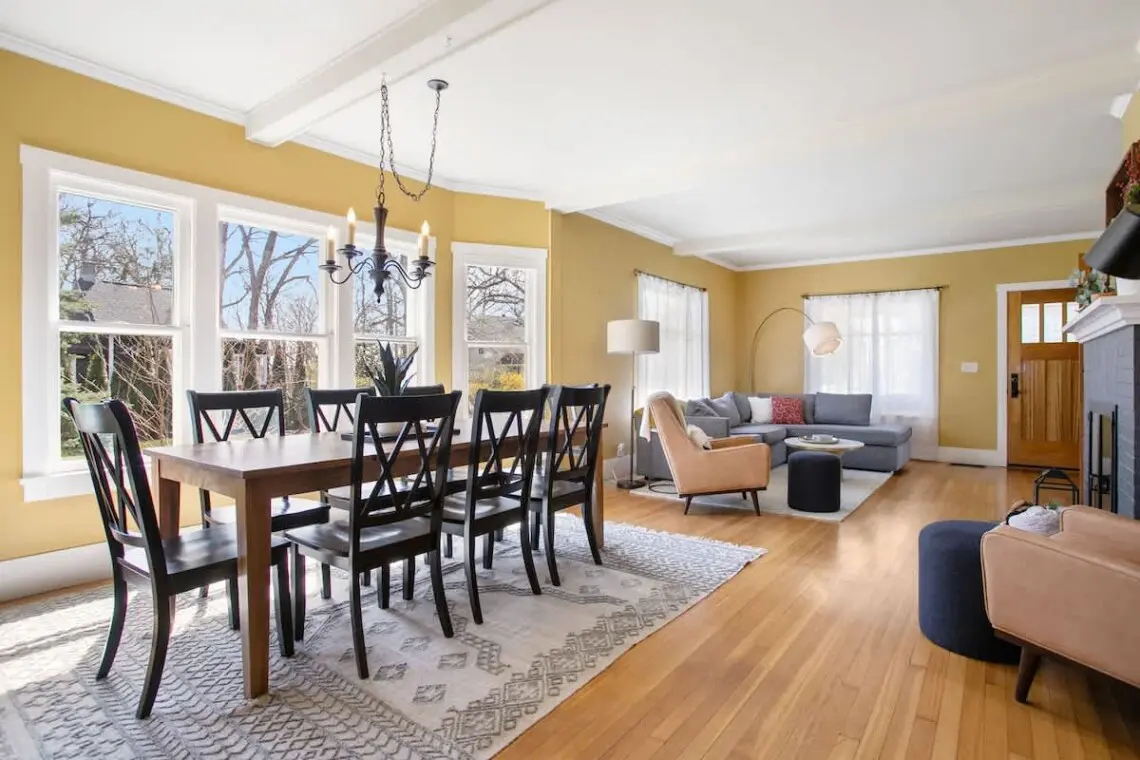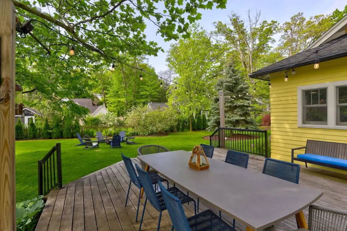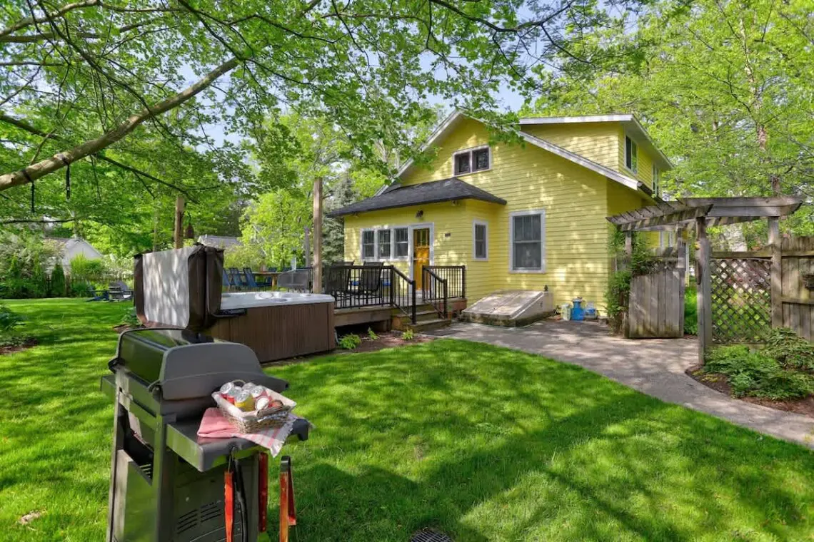 Welcome to Sunny Side Cottage! This charming 4 bedroom and 2 bathroom home is ready to host up to 10 guests. Picture yourself relaxing in the spacious backyard with the stunning landscaping. Start the day off by sipping your morning coffee on the picturesque front porch, and end the evenings unwinding by the cozy bonfire pit followed by a dip in the hot tub. Being only steps away from Downtown Saugatuck, you’ll have the opportunity to explore the lively Michigan beachtowns during the day.